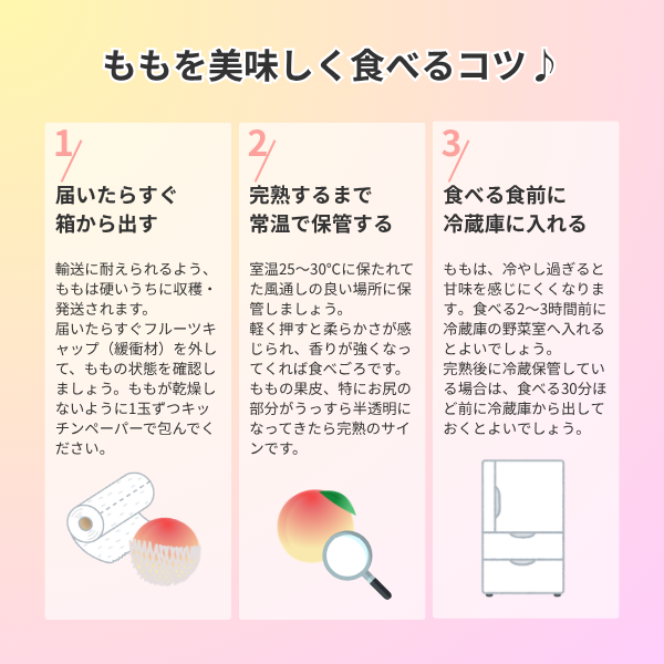 いつもJAフルーツ山梨公式オンラインショップをご利用いただき誠にありがとうございます。 JAフルーツ山梨のももをお気に召していただき、嬉しい限りでございます。 今後もよりよい 商品をお届けできますよう努めてまいります。 またのご利用をスタッフ一同、心よりお待ちしております。 改めまして、この度は当店のご利用誠にありがとうございました。
